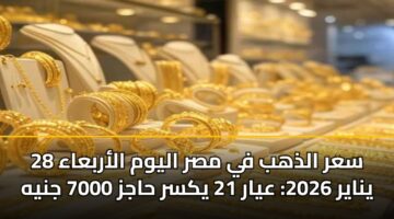 سعر الذهب في مصر اليوم الأربعاء 28 يناير 2026: عيار 21 يكسر حاجز 7000 جنيه